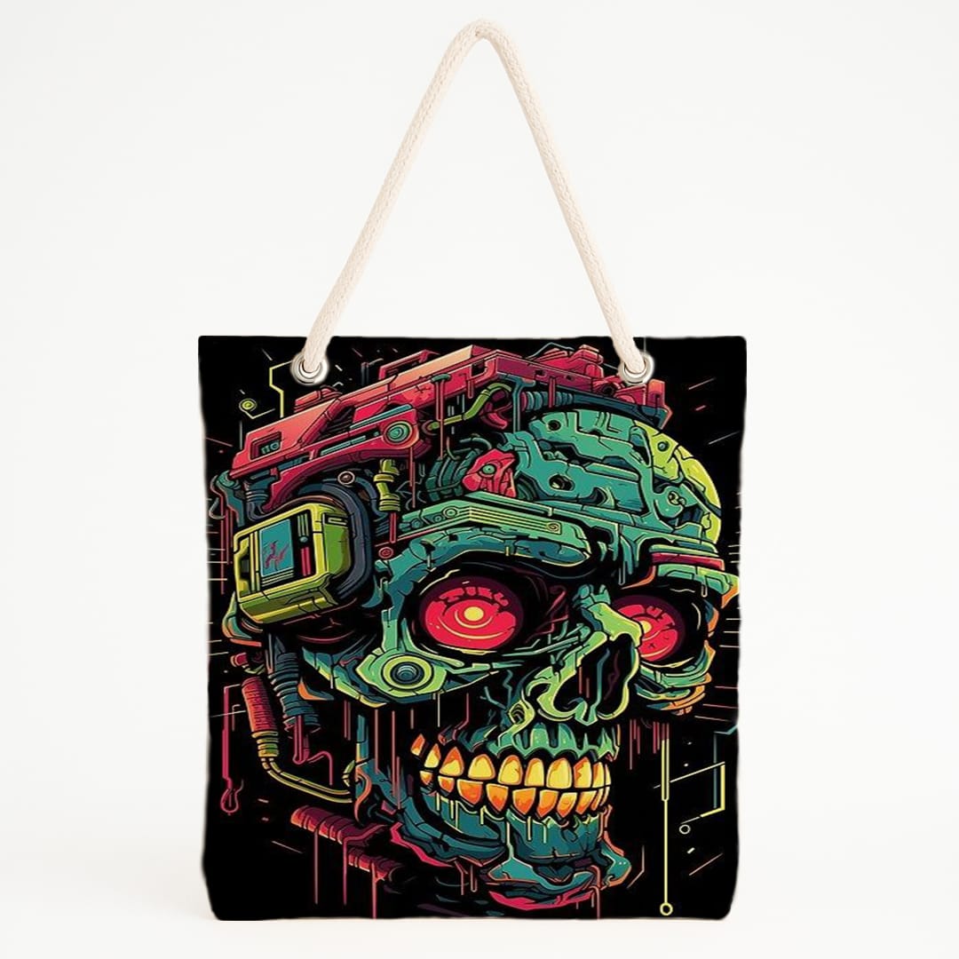 Cyberpunk Kafatası Baskılı Plaj Çantası