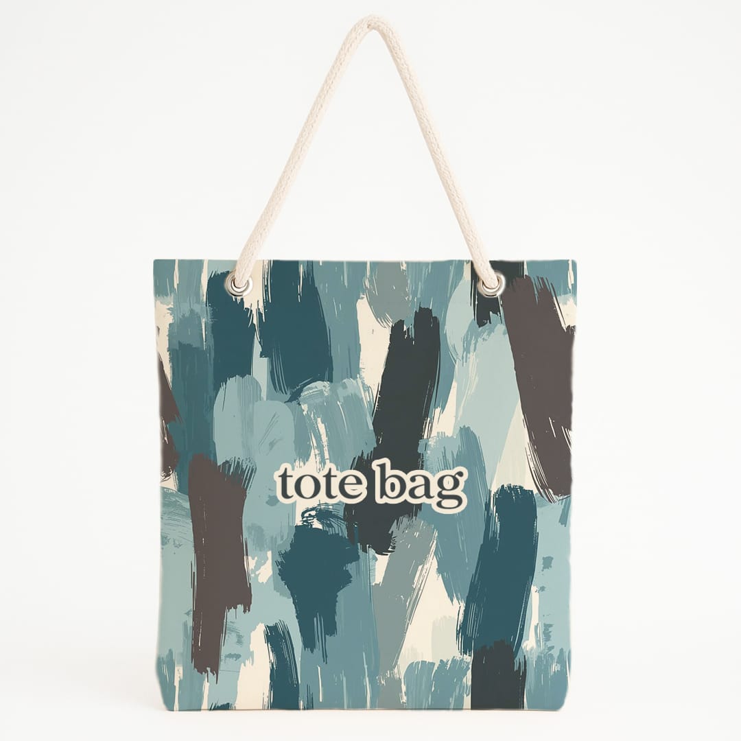 Soyut Fırça Dokulu Mavi Tonlu Plaj Çantası